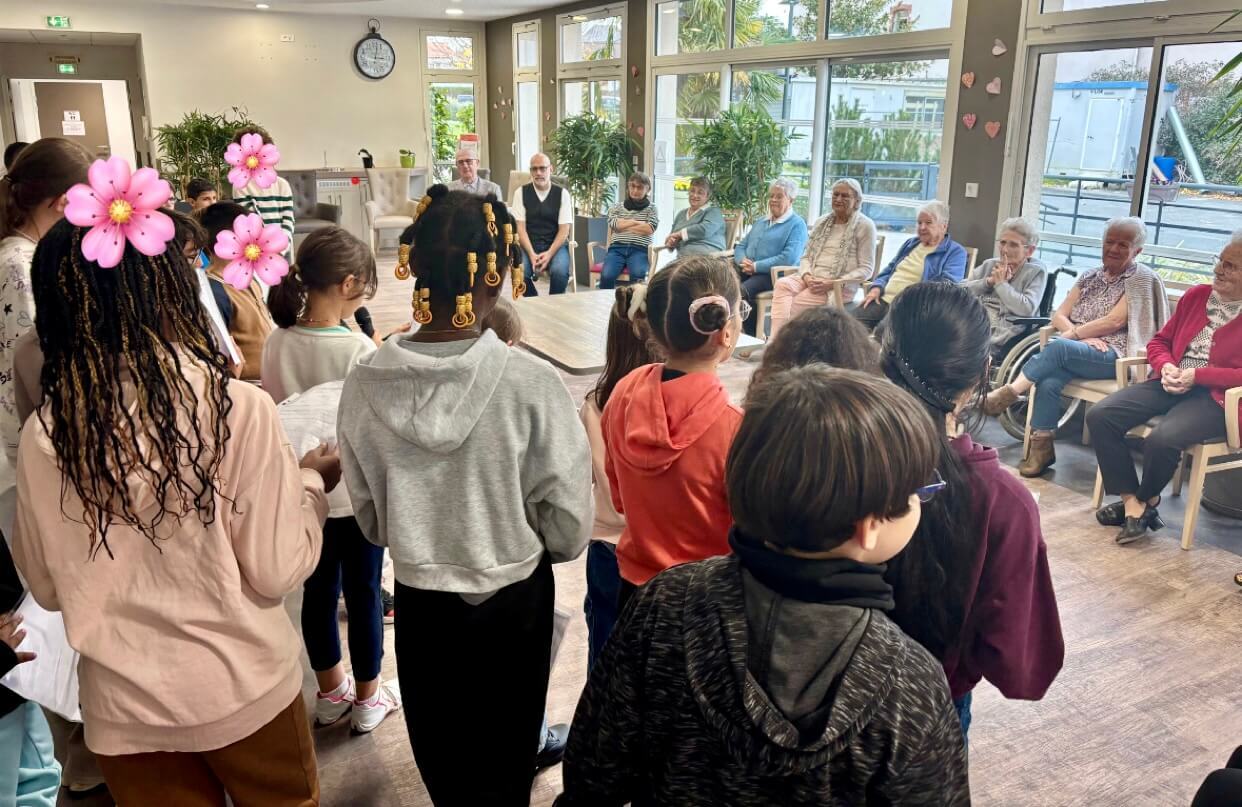 Aujourd’hui, nous avons accueilli les élèves de CE2 et CM2 de l’école Marie Curie pour un moment de rencontre avec les résidents.